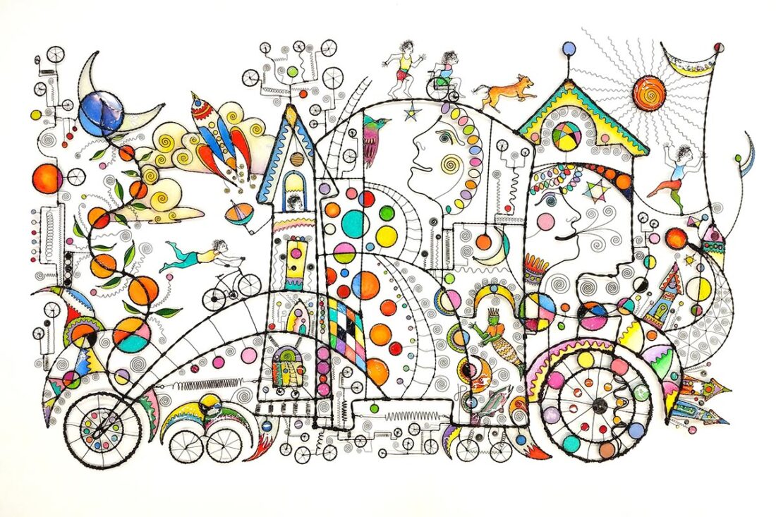 I was commissioned to create this art piece by the Lucile Packard Children’s Hospital in Palo Alto, California. The installation has been on display since October 2019. It is one of the last things parents see as their children are being taken in for surgery on the cardiac floor, so I wanted to give them a sense of hope. I explored themes of childhood innocence, inquiry, and imagination. The different toys, shapes, and movement reflect a collection of memories, while also inviting viewers to embrace life in the moment now. For me, the piece is about becoming that child again. It’s about trust and hope.